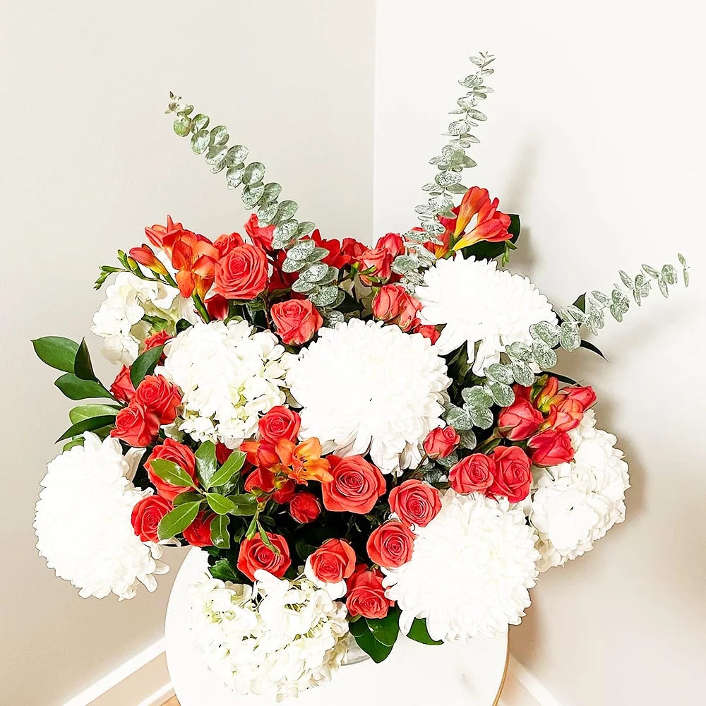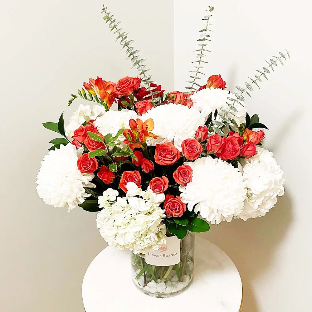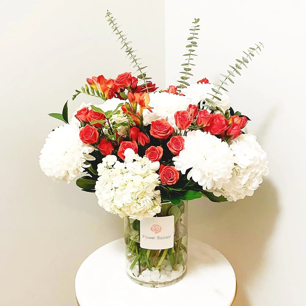 This arrangement of Hydrangea and spray roses is sure to put a smile on your face!